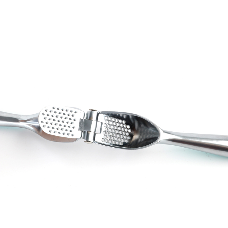 Sarımsaq presi yüksək keyfiyyətli, ekoloji cəhətdən təmiz sink ərintisindən hazırlanmışdır. Döküm və incə cilalandıqdan sonra müxtəlif rənglərdə elektrolizlənir. Hər rəng sürüşmənin qarşısını almaq üçün nəzərdə tutulmuş uyğun makaron tipli plastik tutacaqla birləşdirilir. Bu, məhsulun ümumi keyfiyyətini artırmaqla yanaşı, həm də onun parlaq, təmiz və gündəlik suda qalmasını təmin edir. istifadə edin. Sarımsağı buraxmaq üçün yeni dizayn davamlı sink ərintisi sarımsaq presinin dəlikləri dairəvi şəkildə sıx şəkildə düzülüb. Basma mexanizminin aşağı təzyiqi və leverage prinsipi ilə sarımsaq pastası asanlıqla və səmərəli şəkildə vahid və incə konsistensiyada çıxarılır və bişirmə səmərəliliyini əhəmiyyətli dərəcədə artırır.