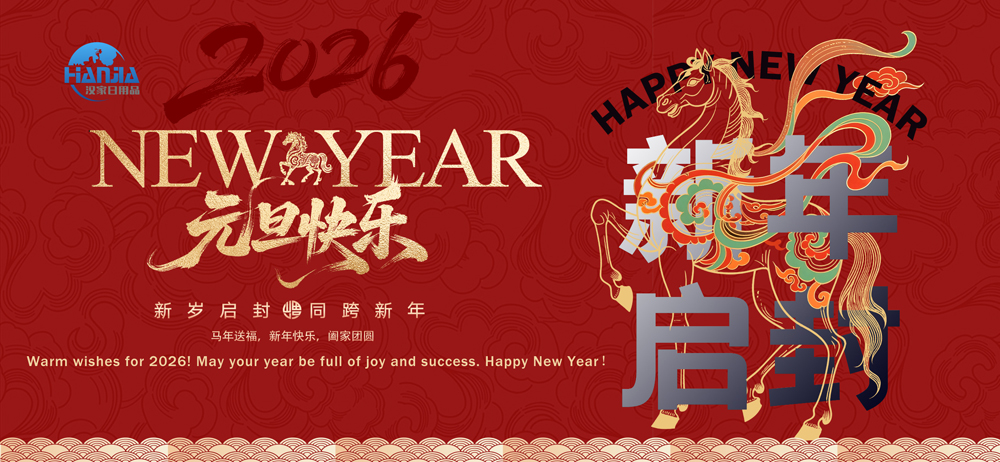 Bütün yerli və beynəlxalq müştərilərimizə xoşbəxt Yeni İl və bizneslərində əhəmiyyətli artım arzulayırıq. Jinhua Hanjia Commodity Co., Ltd. sizə davamlı yüksək keyfiyyətli məhsul və xidmətlər təqdim etməyə sadiqdir və şirkətimizə səfərlərinizi səbirsizliklə gözləyir.