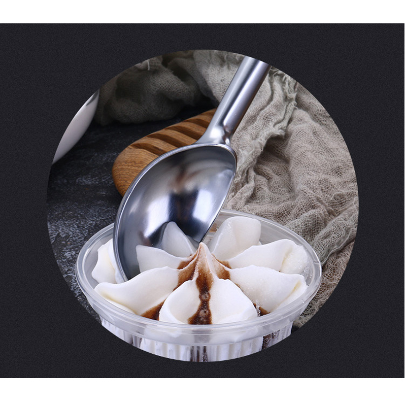 Bu sink ərintisi dondurma çömçəsi yüksək keyfiyyətli sink ərintisindən qüsursuz kalıplama vasitəsilə hazırlanmış rahat tutacaqlı, çəngəl iti küncləri olmayan hamar konturlu kənarlara malikdir və rahat, dairəvi tutma təcrübəsini təmin edir. 16,5 sm uzunluğuna baxmayaraq, çömçənin çəkisi cəmi 75 qramdır, əl istehsalıdır. yüksək temperaturda bişmiş örtüklə (120°C) örtülmüş, davamlı, lakin tük kimi yüngül bir quruluş yaradır. Çömçə başı, dondurulmuş dondurmanı asanlıqla dilimləyən, unikal dizayn edilmiş 108 dərəcə xaricə bucaqlı ucu ilə açıq qayıq formasını qəbul edir. Çömçə başlığının hər iki tərəfində, əyri gövdəsi, əsas səthdən aşağıya doğru uzanan, susuz bir buz əmələ gətirməyə imkan verir. krem buraxılması. Bu düşünülmüş dizayn bacarıq səviyyəsindən asılı olmayaraq hər kəs üçün rahat istifadəni təmin edir.